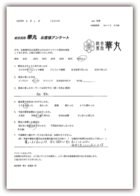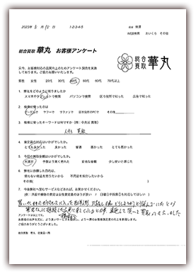 優しい方で良かったです。安心出来たので色々出してしまいました。価格も思ってたより高かったです。